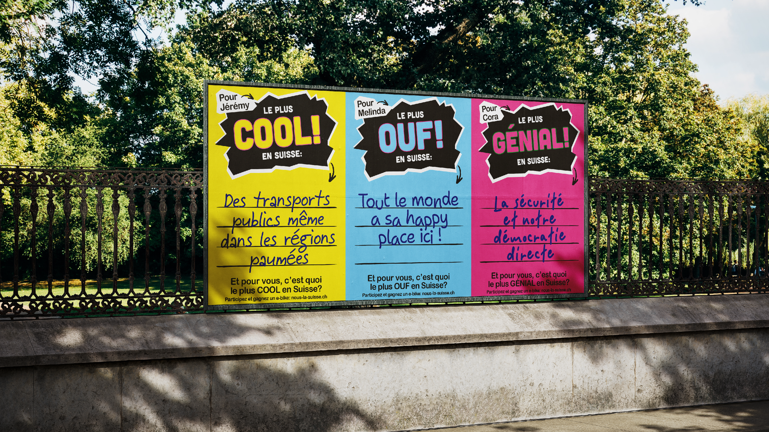 In der zweiten Phase wurden diese Beiträge der Bevölkerung sichtbar gemacht: Die persönlichen WOWs erschienen auf Plakaten, in Online-Werbemitteln und weiteren Formaten. Damit wurde das Miteinander in den Vordergrund gestellt – nicht die Institution oder die Unternehmen, sondern die Stimmen der Menschen. Ziel war es, zu zeigen, dass der Erfolg der Schweiz auf dem Engagement und der Vielfalt aller basiert.
